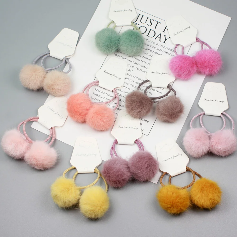 Winter Girl S Colorful Plush Fluffy Ball Pom Pom Hair Tie Band Multi Color Pompom Elastic Hair Band Accessories For Kids Fq014 Hair Ties Aliexpress
